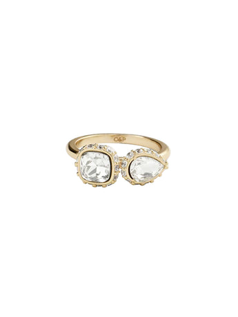 A modern take on the classic moi et toi silhouette. With contrasting cuts adorned in pavé, this ring brings a polished and effortless hint of shimmer to your stack.