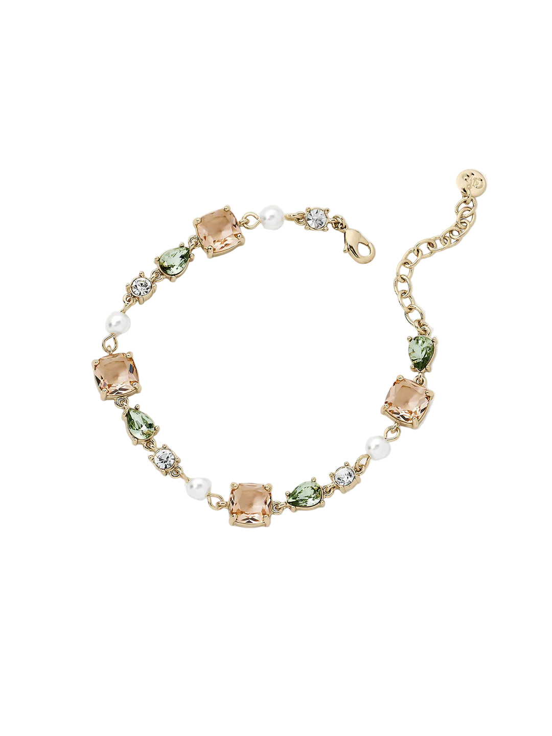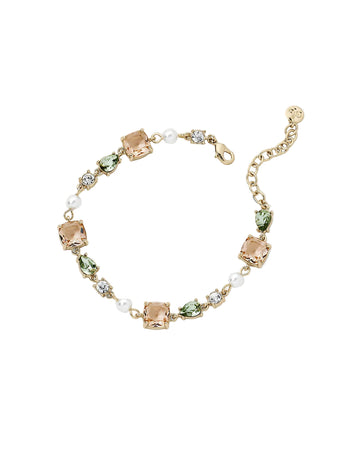Feminine and refined, this luxe bracelet features a delicate pattern of crystals accented with soft blush and green tones. A perfect adornment for your wrist - wear it solo or layered with other dainty favorites.